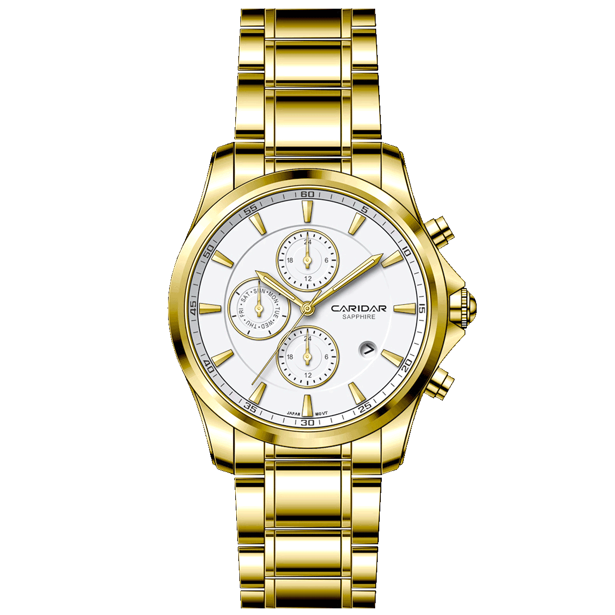 • Tính năng khác:Đồng hồ phụ báo lịch thứ ở vị trí 9 giờ